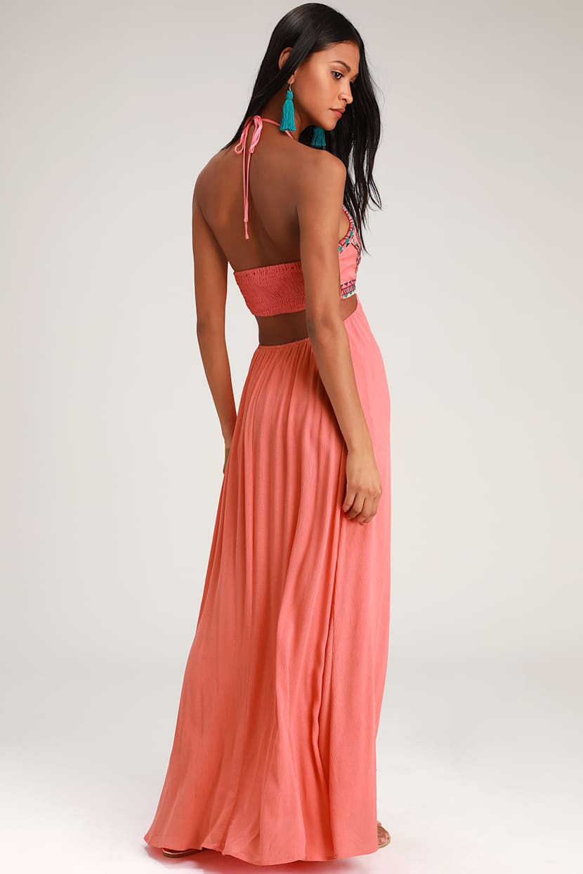 Boho Coral Pink Dress Embroidered Dress Maxi Dress Lulus